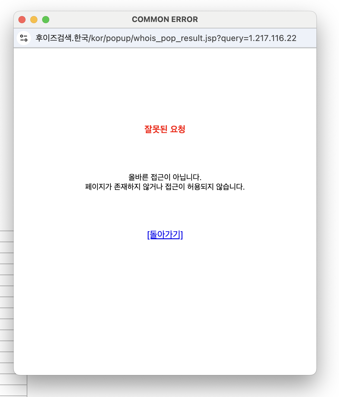 후이즈 또한 정책 의해서 바뀌었습니다. 공공 데이터 포탈 에서 오픈 api를 통해서 아이피를 서치 할수있습니다.